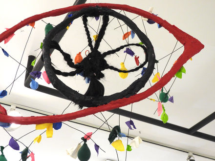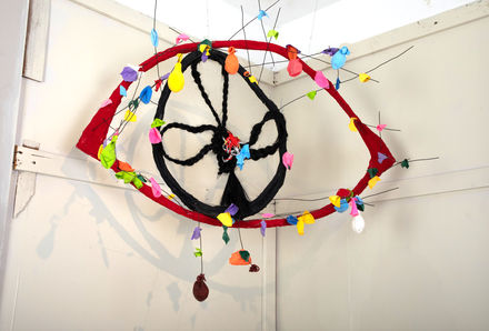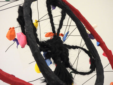 Iron wire, foam clay, plaster, balloon, wig, Chinese knot, woolen thread
